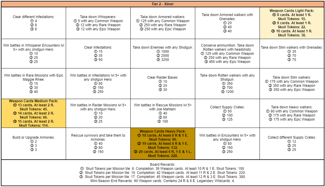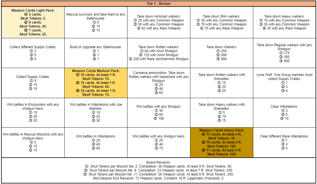 Completing Group Boards, Tiles and claiming Packs between Tiers 1 to 5 will reward you with Skull Tokens, which can be exchanged in the Mini-Season Shop for prizes.. Skull Tokens received per tile, per pack and by completing Group Boards can be found bellow.