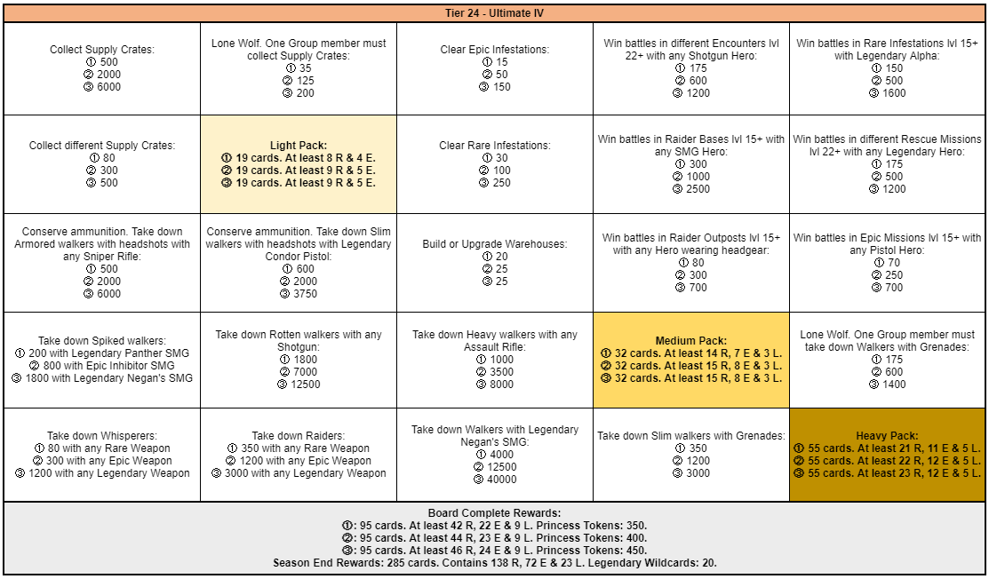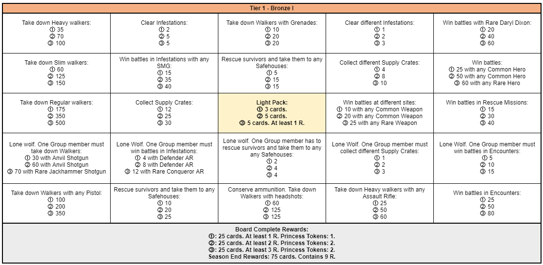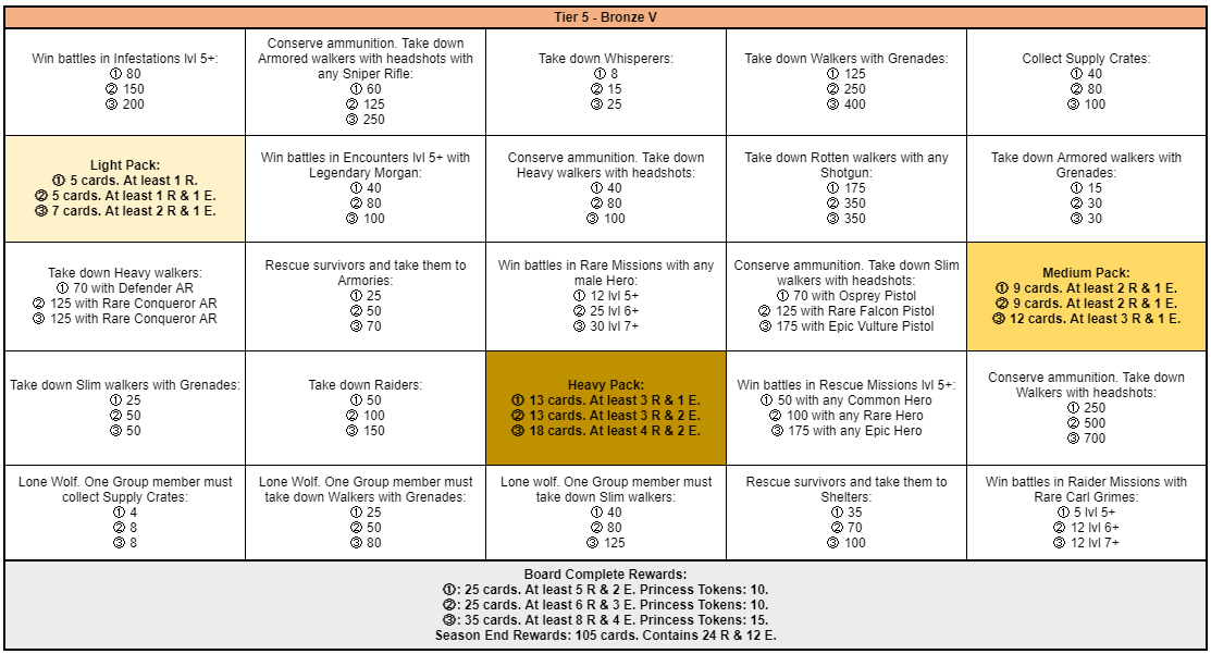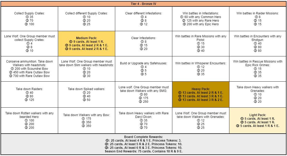 At the start of each round during a Season your Group will find 3 Challenge Boards - this is called a Tier. If you complete all three Challenge Boards you will complete the Tier, your Group will earn rewards and progress to the next Tier.