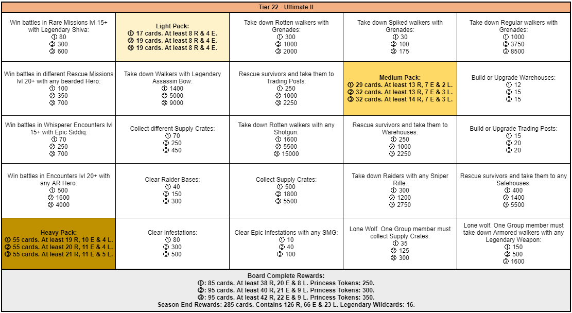 You will be able to earn enough Princess Tokens to unlock Legendary Princess by completing Tier 1 to 16 (board 1) or by completing Tier 1 to 13 (board 2) and by collecting the maximum amount of tokens from the Princess Event coming later in the Season.