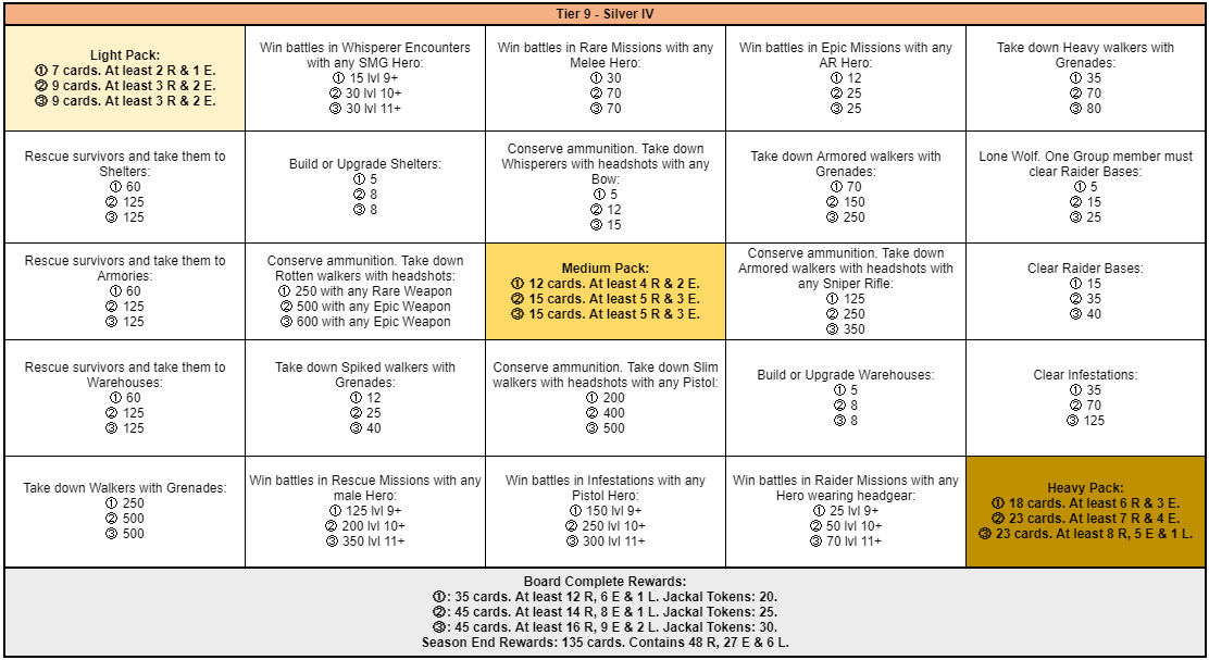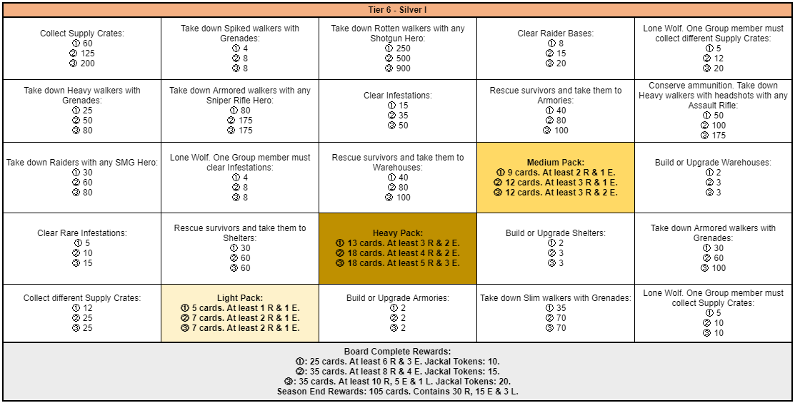 - By completing Silver tiers (Tier 6 to 10) once you earn a total of 330 Jackal Tokens.