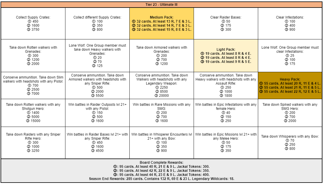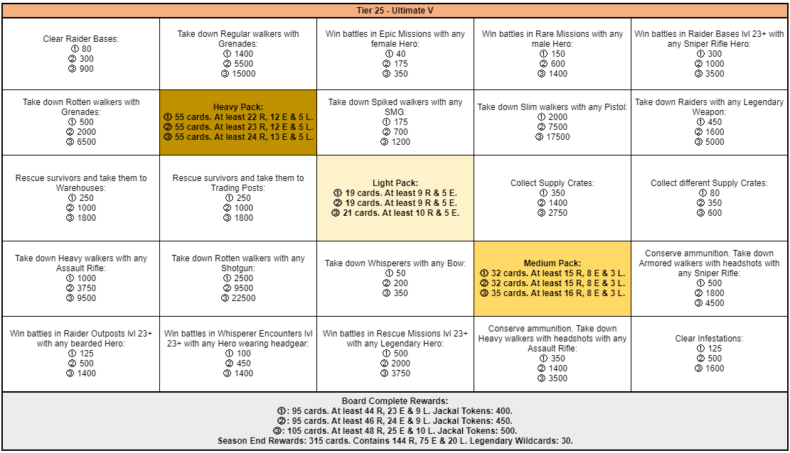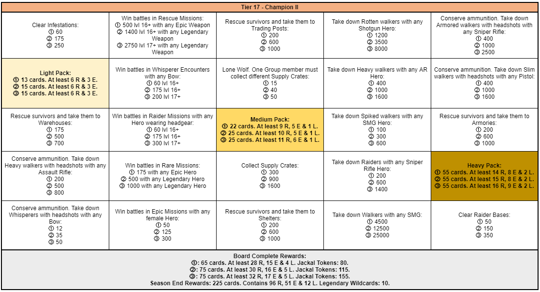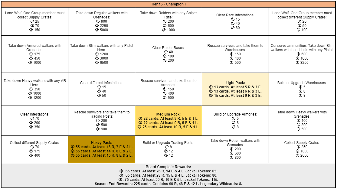 - By completing Champion tiers (Tier 16 to 20) once you earn a total of 2195 Jackal Tokens.