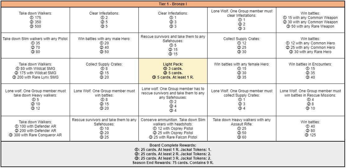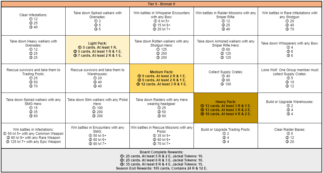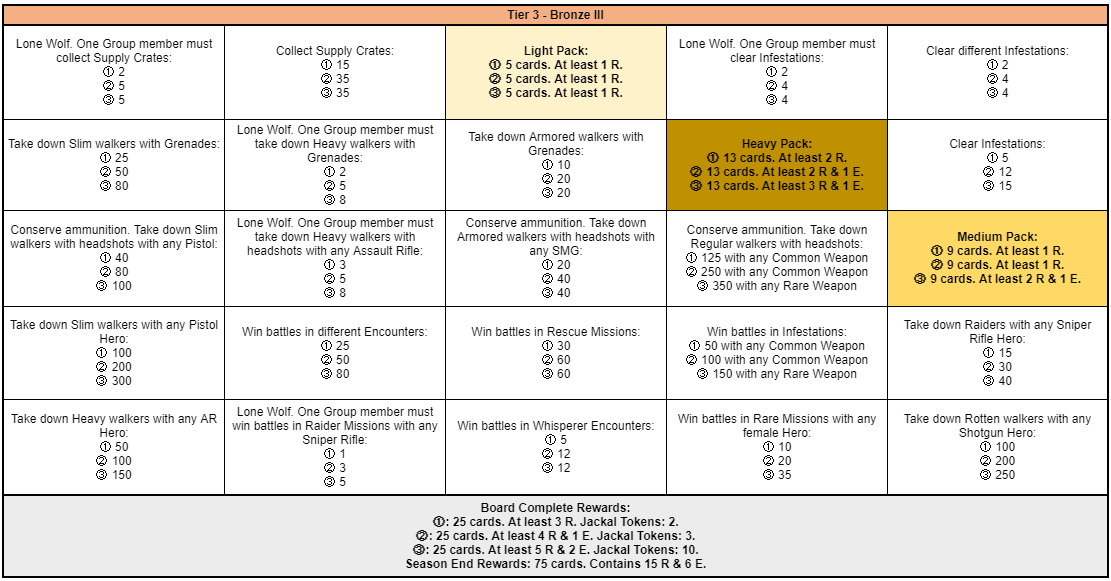 - By completing Bronze tiers (Tier 1 to 5) once you earn a total of 85 Jackal Tokens.